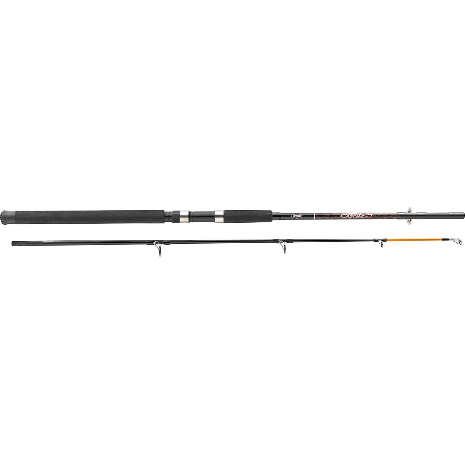Scherp geprijsde boothengels van Mitchell. Door de glasvezel constructie zeer sterk. Voorzien van TS geleideogen en EVA schuim handgreep voor een goede grip.
